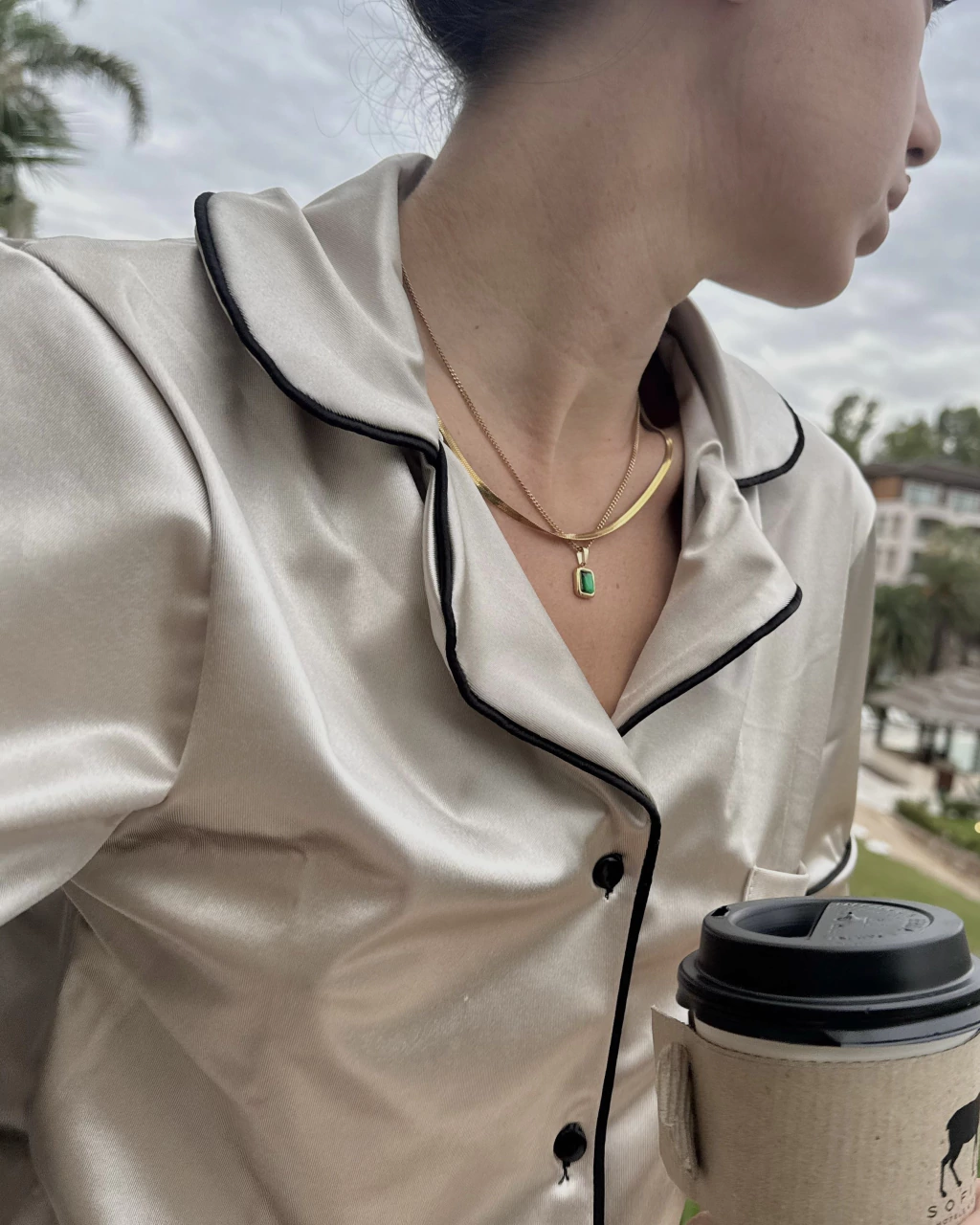 Este pijama satinado elastizado es la combinación perfecta entre lujo y funcionalidad. Está confeccionado en tela satinada suave al tacto, que aporta un brillo delicado y sensación fresca sobre la piel. Su diseño camisero cuenta con una fila de botones en la parte delantera, facilitando su uso y dándole un estilo clásico.