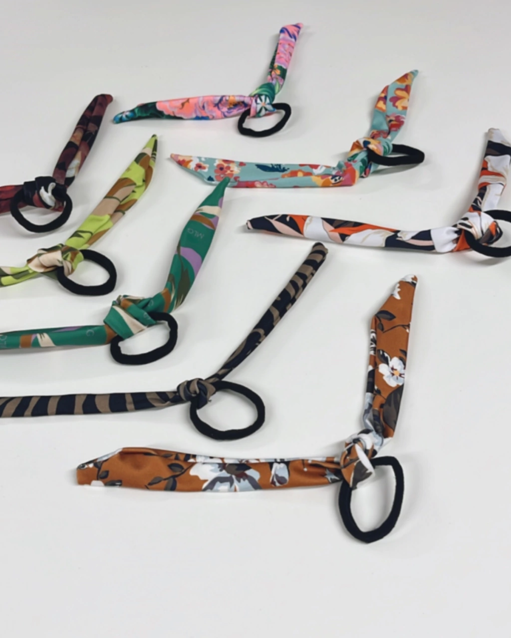 Colitas de pelo suaves y resistentes, confeccionadas en material elastizado con estampas de la colección. Ideales para usar todos los días y para estar combinada con los productos de la colección, aportando un detalle delicado y práctico al peinado. No tiran del cabello y mantienen la forma sin aflojarse.